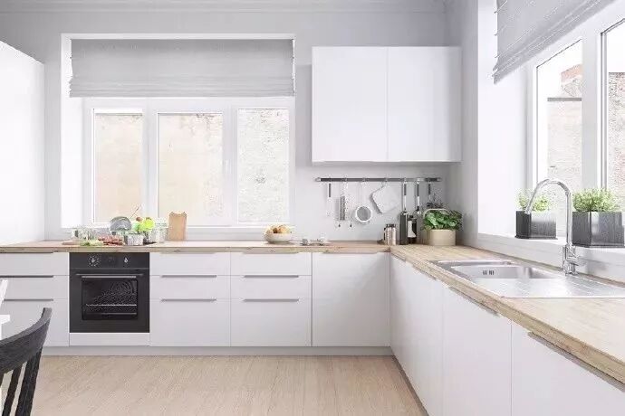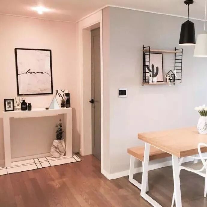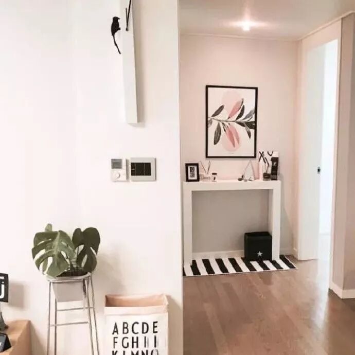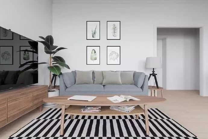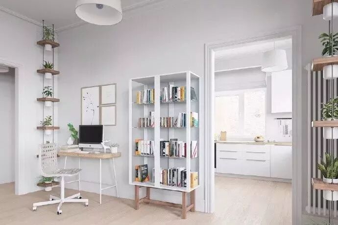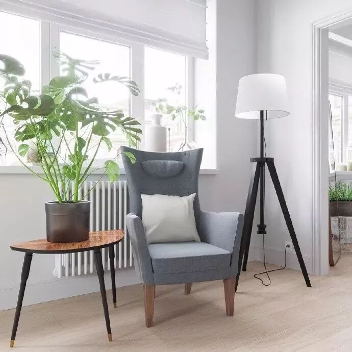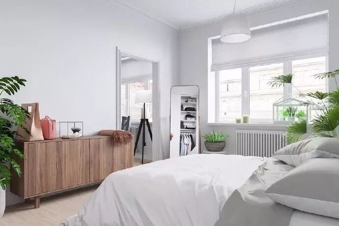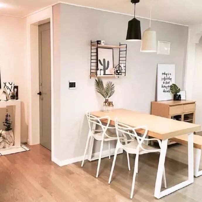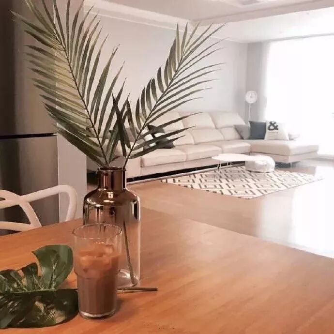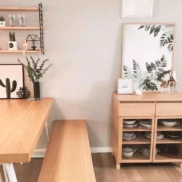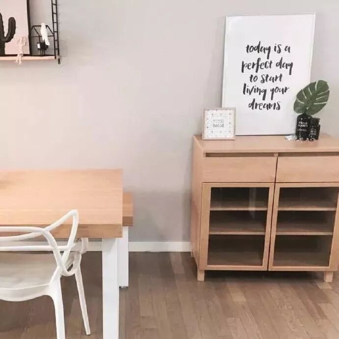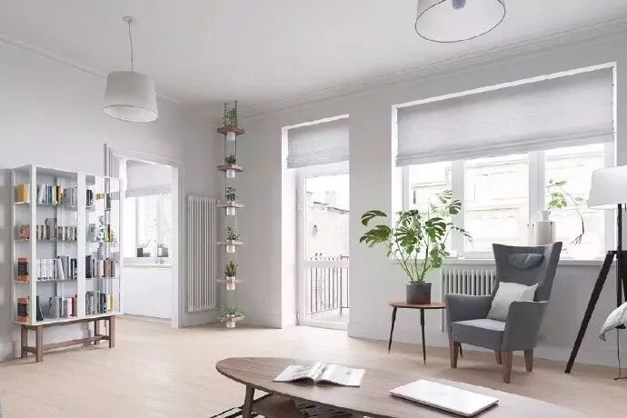 北欧风里的几个主要元素:白墙、原木、绿植。