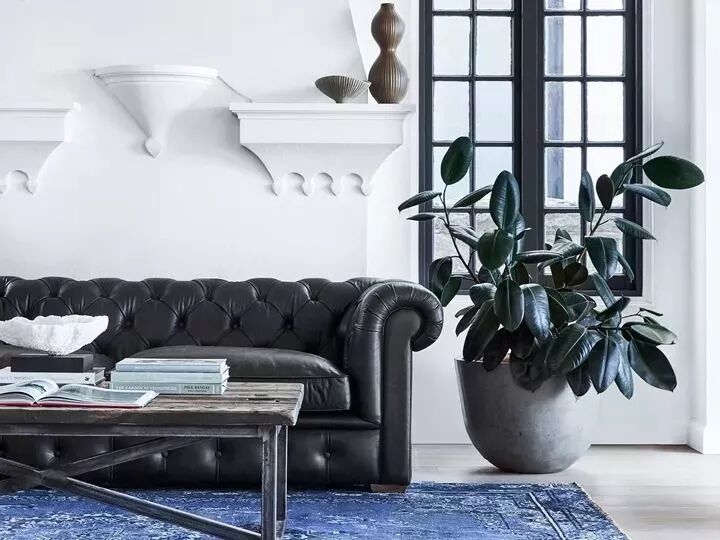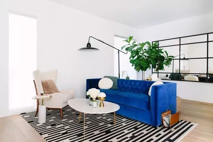 沙发前怎能少了地毯的存在?尤其是在秋冬时节,毛绒绒的触感真的很有治愈感呀。根据自己家的整体风格挑选款式,已经有十足色彩感的沙发,就配块黑白灰无彩色的地毯,相互中和,达到视觉平衡。