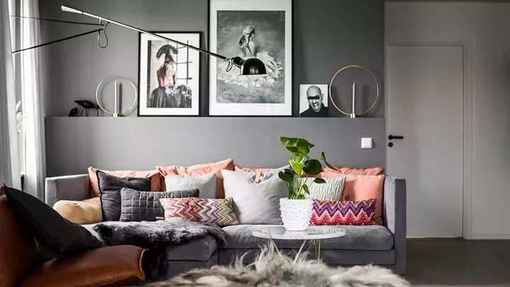 沙发后的墙面不要空着,用装饰画填充你的墙面或者一组照片墙创造强烈的视觉冲击。