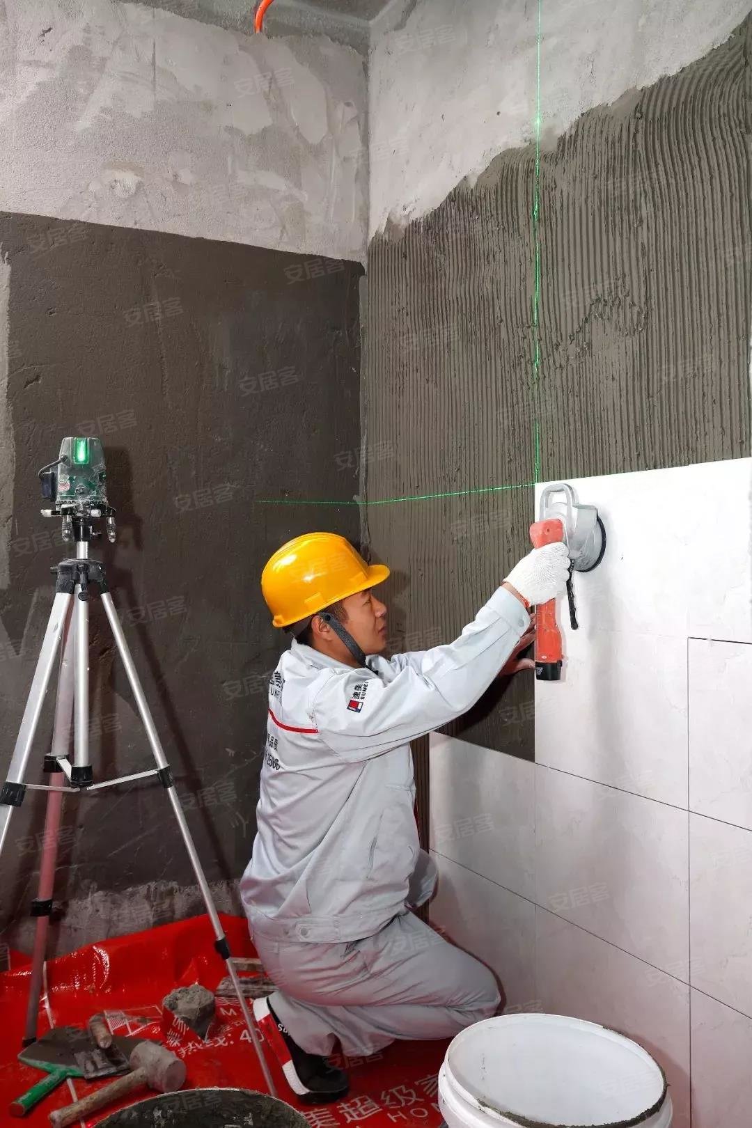15、材料都到位后,就要开始铺贴瓷砖了,包括防水工程、门槛、地龙骨的安装,都是在这个阶段完成的。
