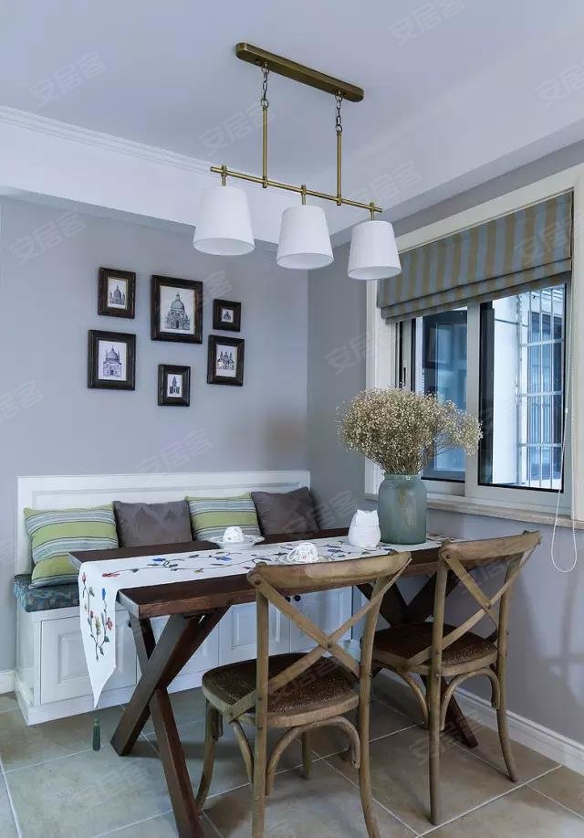 靠墙的位置定制一个收纳座椅,既满足了收纳需求也可以作为平时招待客人的休息区,一物多用比直接放餐凳更有设计感,也更有田园风情。