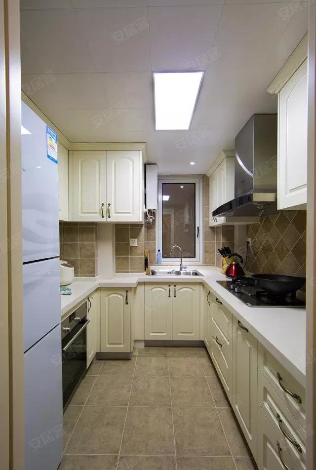 U字型厨柜布局的厨房,让每个厨房用具都有了归处,将空间利用最大化。