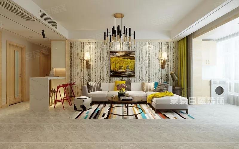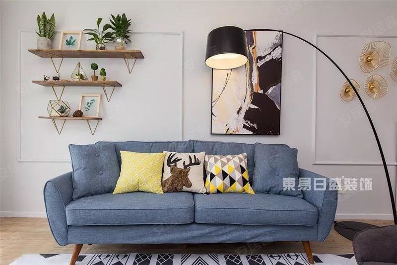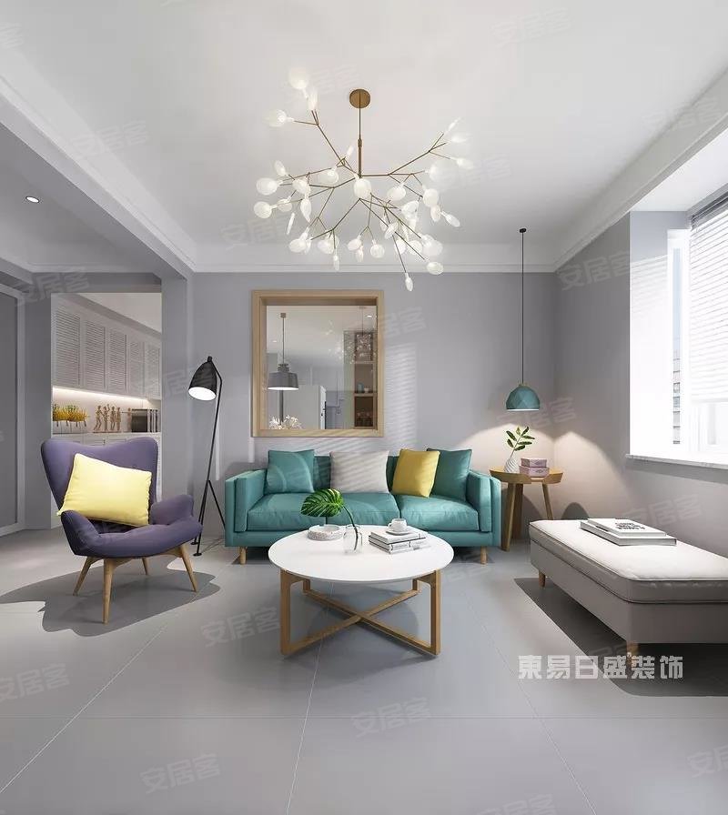 北欧风格令人舒心的一大主因在于色彩搭配,亮眼的湖绿壁纸、舒心的柠檬黄窗帘,各色拼贴的地板,柔软的浅灰色布艺沙发,营造了整体空间的色彩平衡感,让人置身其中便不自觉放松了心情。