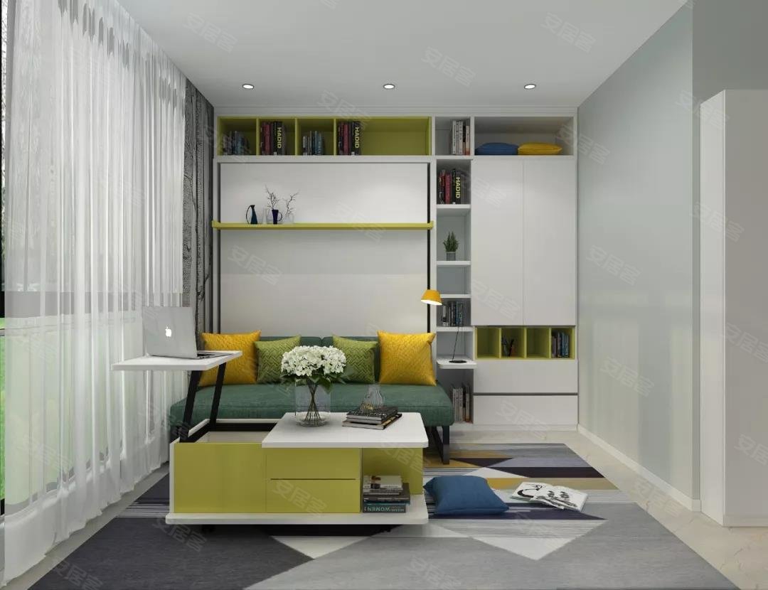 ▲上面小编提到了在书房里可以把可伸缩餐桌改造一下供办公、茶歇使用。除此之外,你还可以试试可升降茶几,升起来就能成为一张功能齐全的办公桌。如果你想要一个书房,户型又不允许,那么就可以考虑把电视柜做成书柜,然后设计一个这样的茶几。