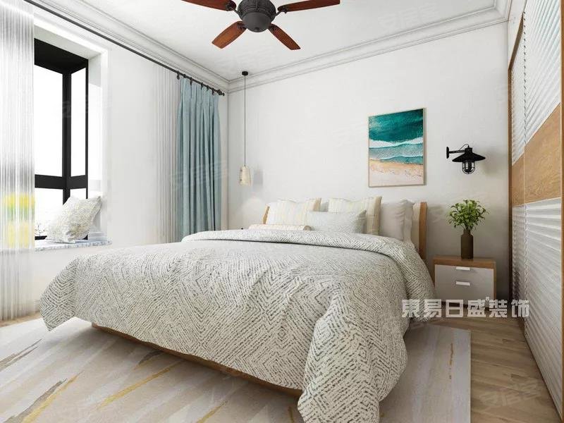 卧室设计以通体的暖色调和清新的床铺饰品构建出一个温馨的小窝,小巧精致的飘窗偏居一隅,以白色的薄纱窗帘半掩,掀起一帘幽梦的浪漫情怀。