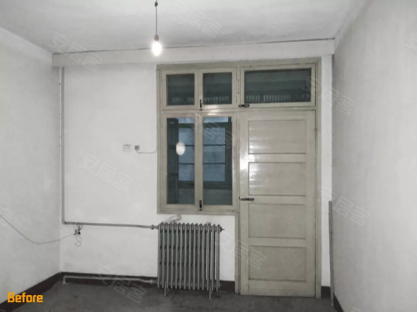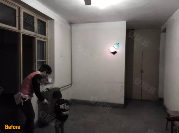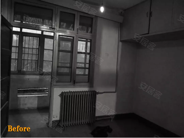 改造前的客厅,80年代标配的暖气组,经久发黄的老旧柜子