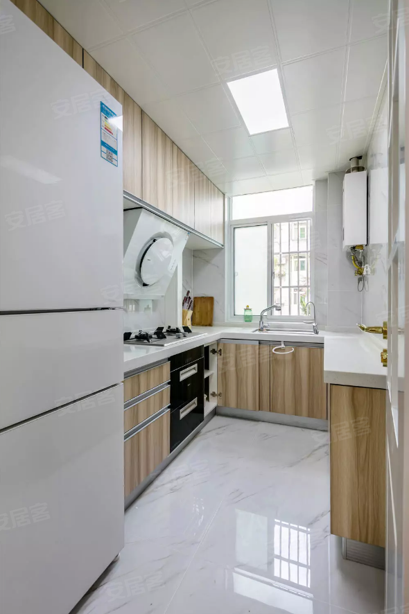 整体橱柜、U型布局,让厨房收纳与美观兼得。