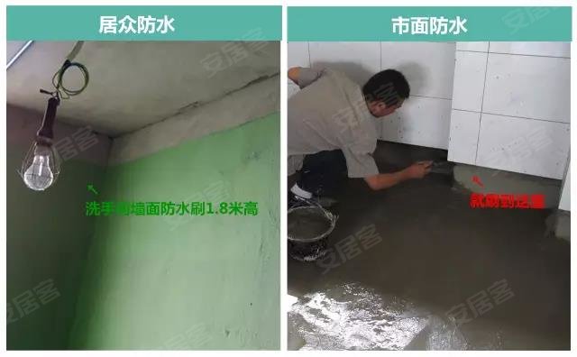 2、如果你的卫生间背面是柜子的话,那面墙一定要刷防水,不然柜子很容易受潮,真的!墙面防水高度一般是1.8米!