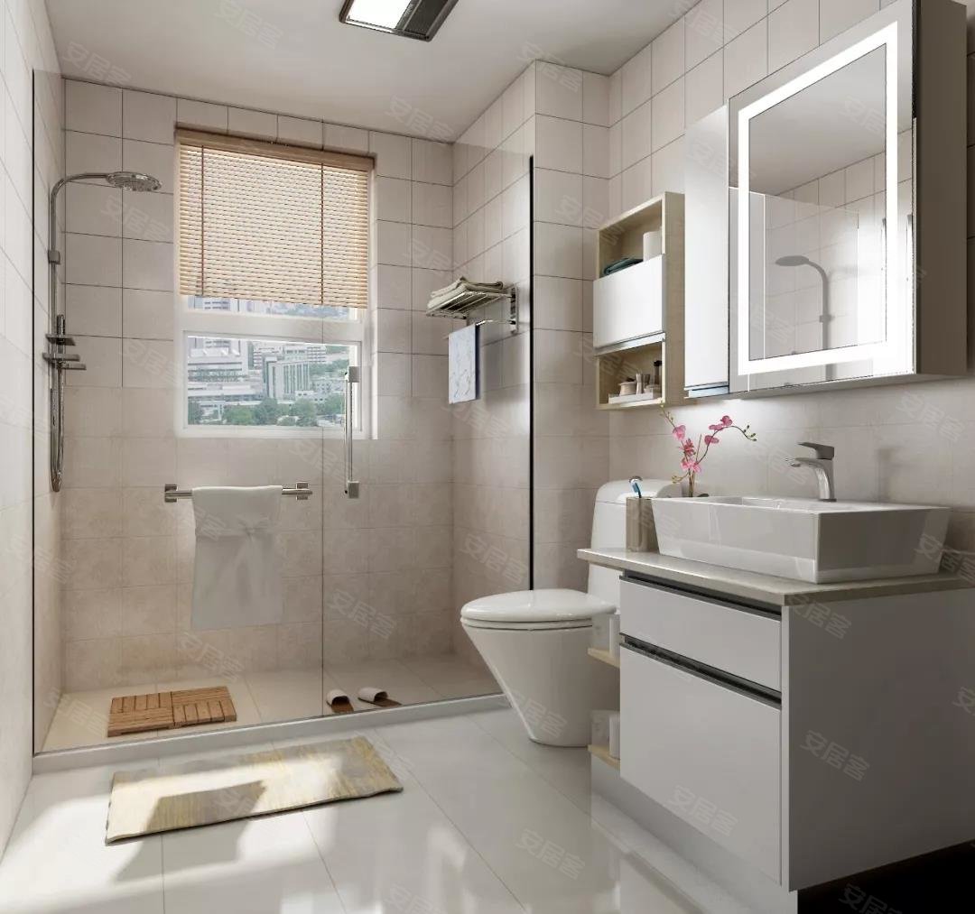 建议选择尺寸较小的卫浴产品,多增添收纳空间,做好干湿分区。另外选用浅色的瓷砖提高空间明度可以使卫生间看上去视觉上显大一点。暗卫的话可以安装大吸力的排风系统。