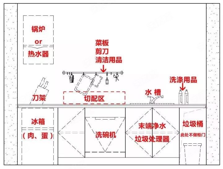 ❖灶具不要紧贴墙面,两边都需要预留20cm的空间方便日常操作,以免撞到胳膊。