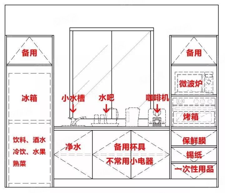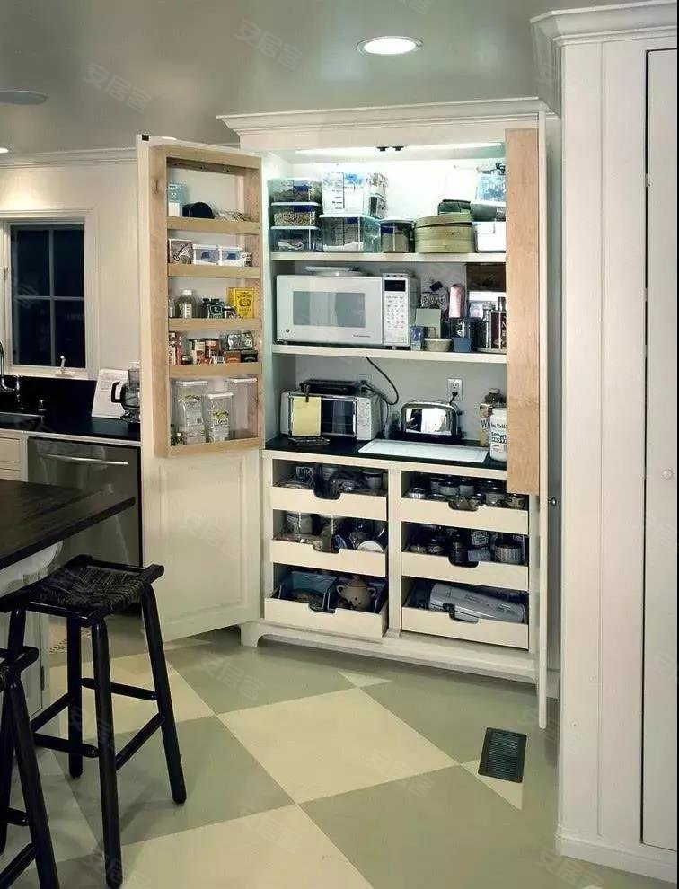 ❖一个2.4米宽2米高的水吧+电器柜。可以提供2㎡的收纳空间,解决90~100件物品,其中75%是常用随手放的优质收纳,让你的厨房“空”下来。