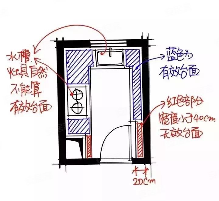 ❖厨房有用的操作台面,深度一般要在40cm可以有效的摆放或者收纳东西。
