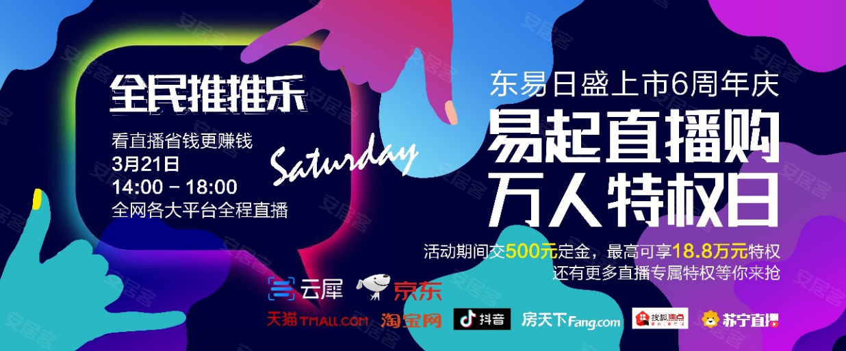 已经上市6年的东易日盛,在未来仍将继续坚持“客户价值第一”的理念,为更多的国人“装饰美好空间,筑就幸福生活”。同时为了响应国家号召,鼓励疫情期间“宅在家里看装修,业主服务不打折”,东易日盛将在3月21日展开一场盛大的“易起直播购 万人特权日”线上直播活动,除了邀请装修行业大咖在线答疑分享装修心得,更有意想不到的让利活动答谢新老客户,东易日盛愿在为更多消费者提供A股上市品质的装修服务的同时,圆更多人的装修梦!