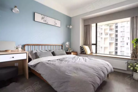 卧室有大飘窗可以让室内享受充足的光线,不仅让居室明亮舒适,更是开阔了居住者的视野,魅力无限。