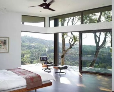 在房间里透过落地窗,感受大自然的寒来暑往,四季更替,也感受着窗外风景如风景油画般的流动,这就是落地窗的魅力。