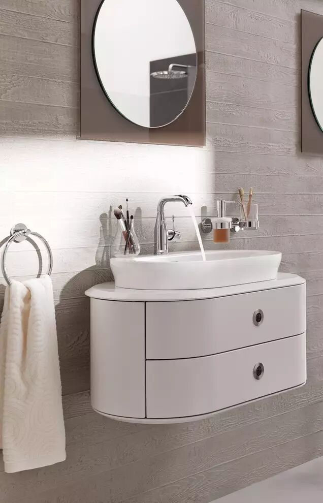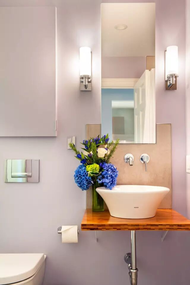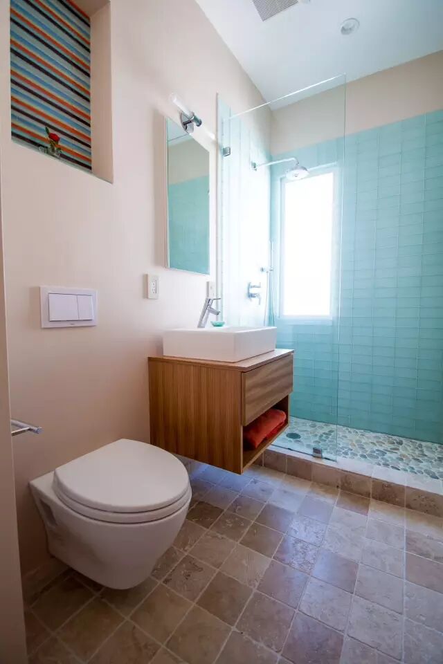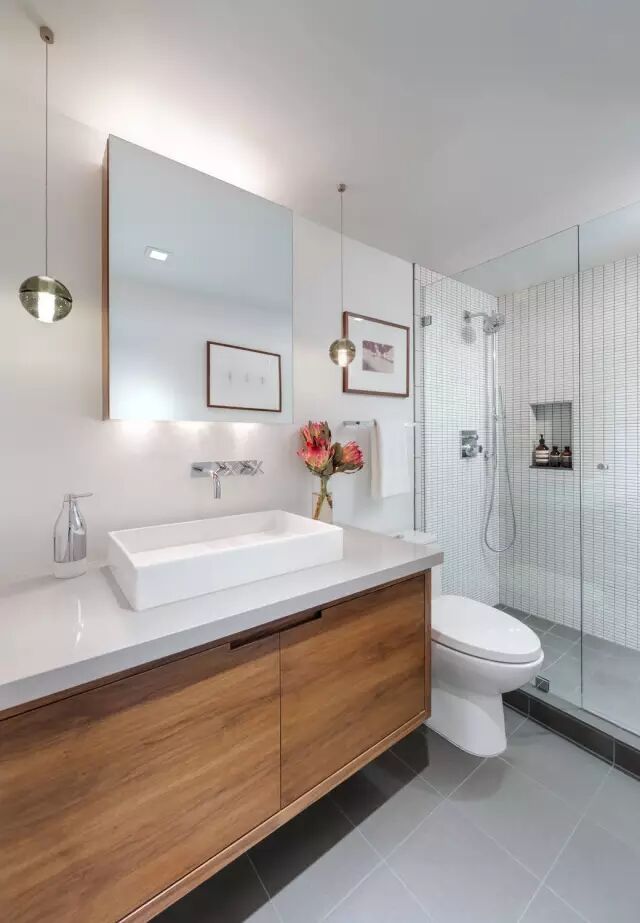 在大面积留白的前提下,加点色彩,浴缸、浴室柜、墙壁马赛克,都可以变得多姿多彩,让小空间不再单调。