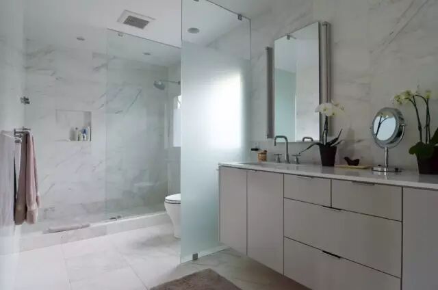 简约风格的卫生间没有太多复杂的设计,一般采用白色、米色的搭配。简洁的布局中不缺实用的功能。