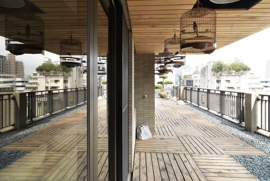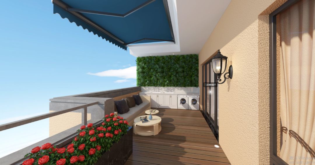 阳台的地面可利用旧地毯或其他材料铺饰,以增添行走时的舒适感。在阳台种植花草,营造园林小空间,为家居增添自然景观。