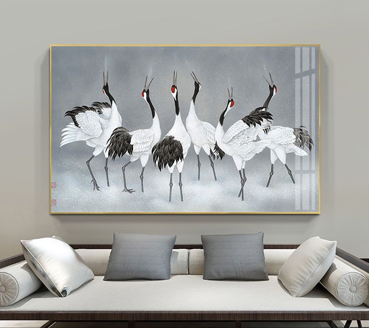 客厅如悬挂花草、植物、山水或是鱼、鸟、马、白鹤、凤凰等吉祥动物,寓意极好。