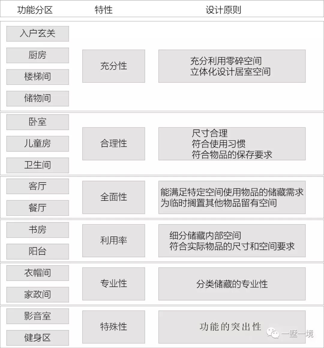 根据功能分区研究侧重点,不同空间不同收纳理念