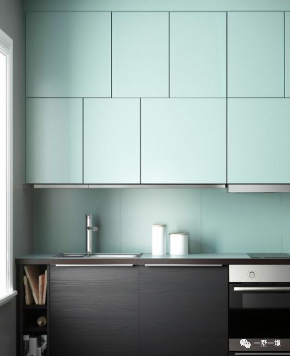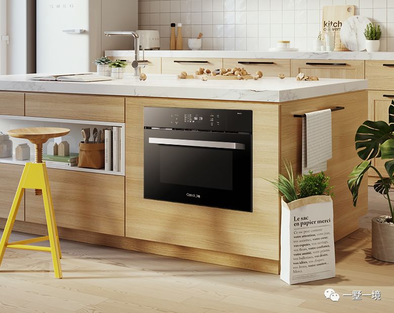 ④蒸、烤入柜蒸箱、烤箱、微波炉等厨房大型设备如今都可以定制设计,将其设计成柜内或者和柜墙统一的色调,让这些并非天天使用的大型设备像变色龙一样隐藏起来。