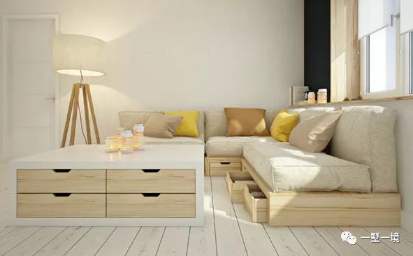 公共空间指的就是客厅、书房、阳台等大空间收纳。设计要点是尽量封闭空间,使用大面积的收纳方式,否则用零碎的收纳小件的话会显得空间特别杂乱,繁琐。
