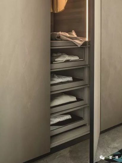 ③老人衣柜:老人房衣柜设计中多要关注使用过程,尽量避免多次下蹲取物,因此设计过程中建议多做层板和抽屉。