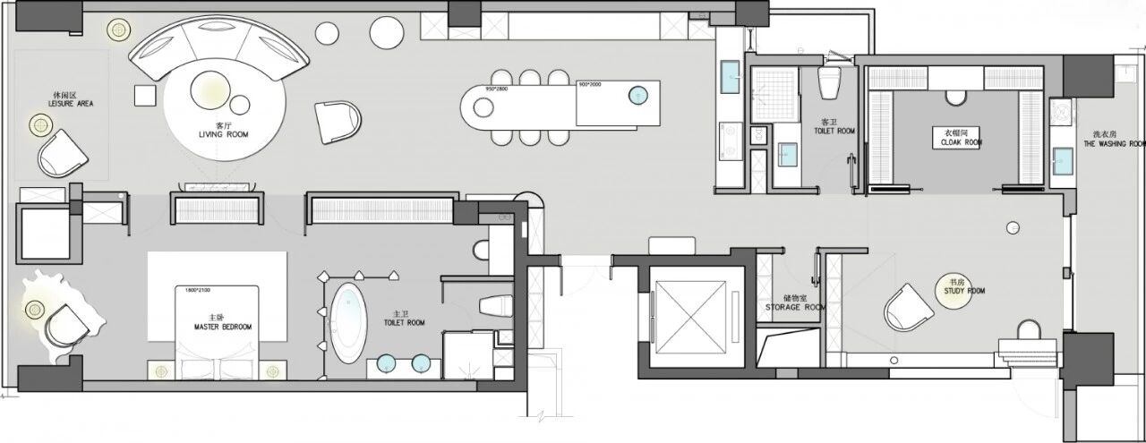 空间采用开放的布局形式,空间之间隔而不断,保证足够的通透性。