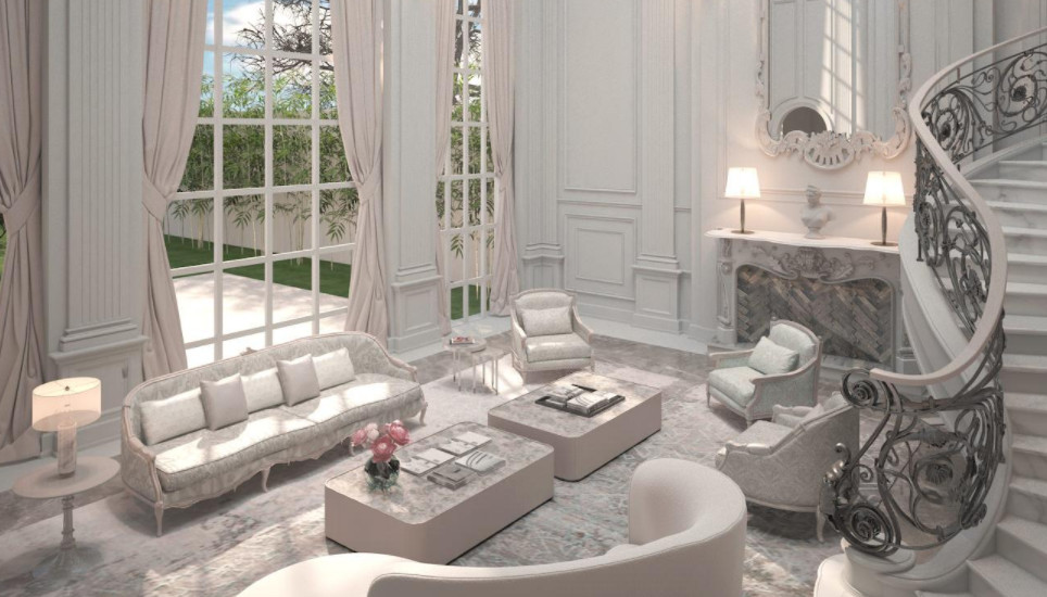 将建筑形式、园林景观、公共艺术融为一体,大胆将古典跟时下潮流元素结合,打破时间与空间的维度释放束缚。采用极富造型感的吊灯,使得客厅的延展性更大,让人有一种不紧不慢的自由感和精致感。