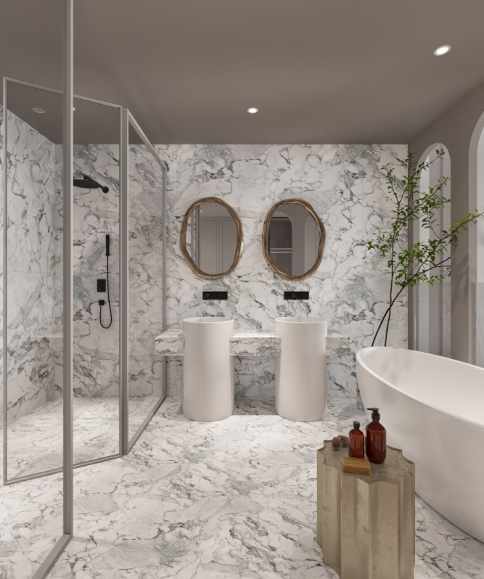 在房子的很多地方设计弧形门洞,卫生间的这部分就能很好看见建筑设计的影子。