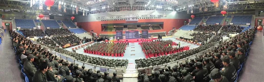 2000多名与会人员身着整齐划一的工作服有序的坐在独墅湖体育馆内,俨然成为一幅场面恢弘的巨制!
