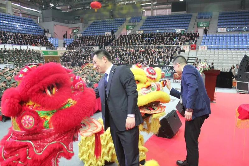 原力崛起·决胜出击丨紅螞蟻装饰2018英雄出征誓师会在紅螞蟻装饰董事长李荣李董和执行总裁钱士亮钱总的舞狮点睛后正式启航!
