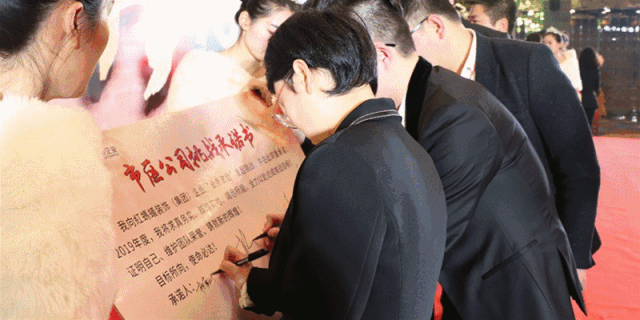 指标下达,签下军令状就代表团队的承诺,证明自己,维护团队荣誉,向更高的目标冲刺!2019,势在必得!