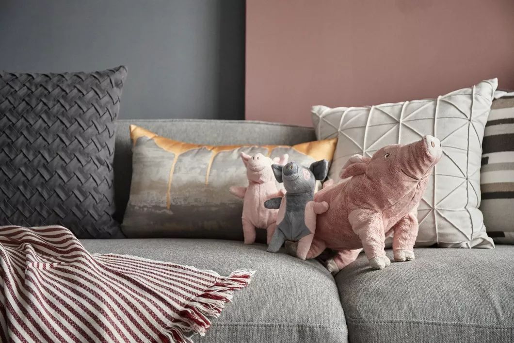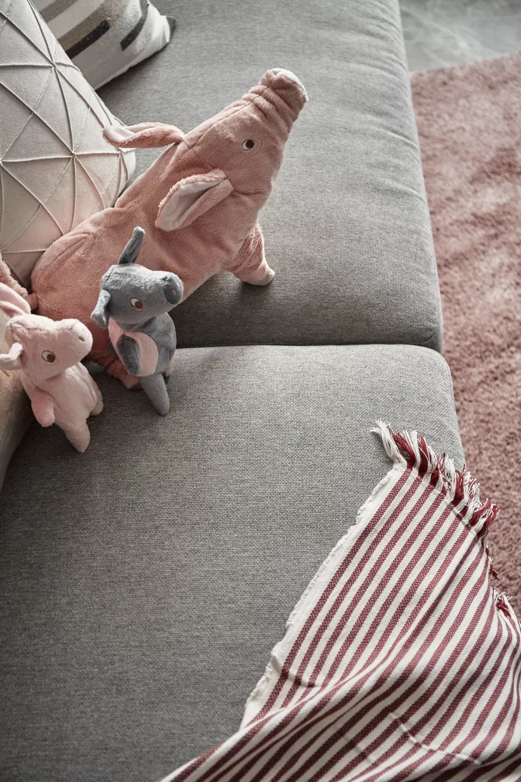 充满童趣的粉色布偶,也与整体风格巧妙呼应,为低调、素雅的空间增添了几分柔美气息。