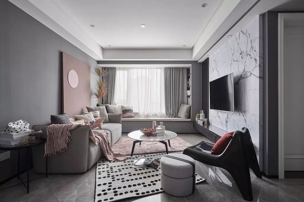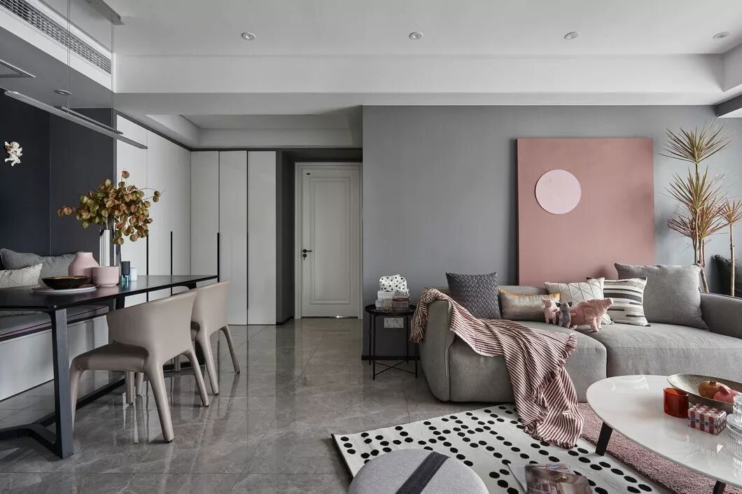 烟粉色,是一种带点灰调的粉色系。它的饱和度比少女粉要低一些,整体格调不明媚、不张扬,甚至看起来有种灰蒙蒙的感觉。但其独特的个性氛围却可以让你收获满满的高级感。今天要分享的一套家居案例,是以高级灰为主打,烟粉色作为点缀的气质之家。