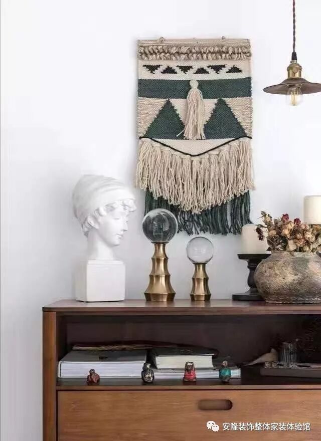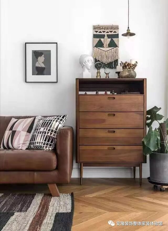 沙发右侧还摆放了一款斗柜,一方面利用率高,加上台面的装饰物,还可以起到润色空间的目的,挺好。