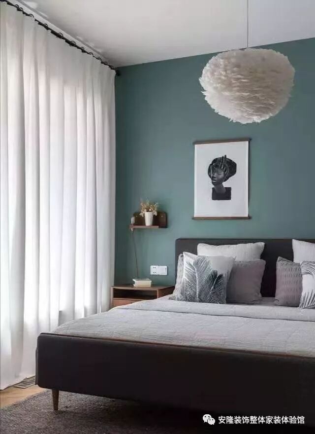 另一面是睡床,背景墙和之前的风格差不多,唯一不同的是色调换了,所以这里就不再赘言了。