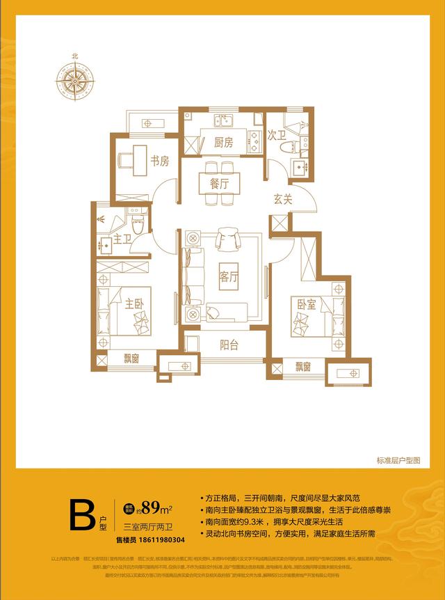 108平三居可以看做是89的加强型,南向三面宽,南北通透,全明格局,比89的三居更宽阔,居住舒适度更高,但是价格相对也就更贵。