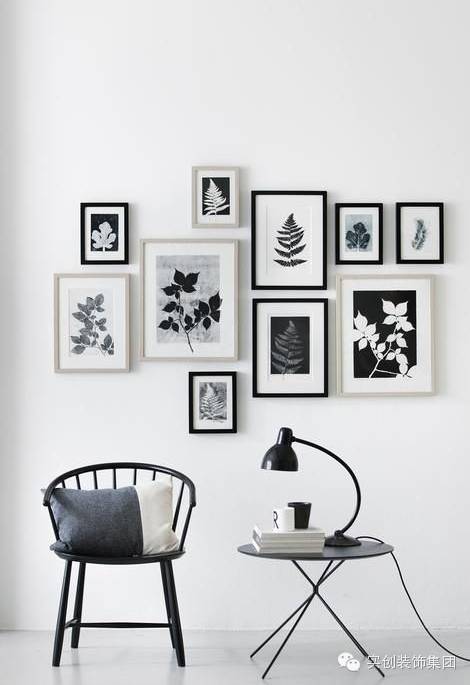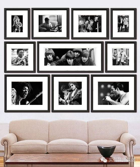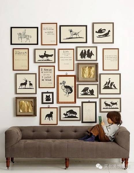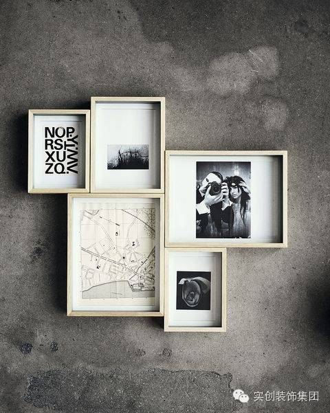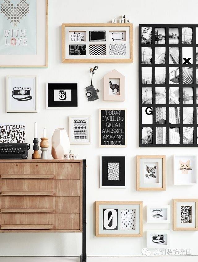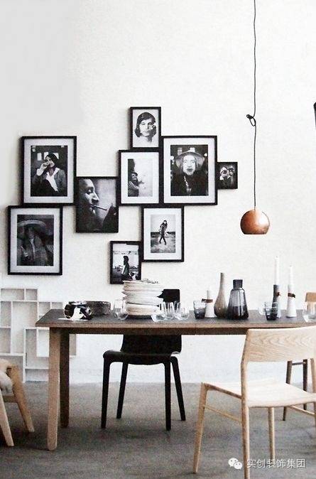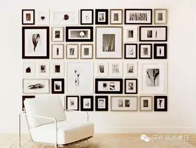 再来看一些别人家的照片墙案例,无非也是运用上述所列的排布手法。