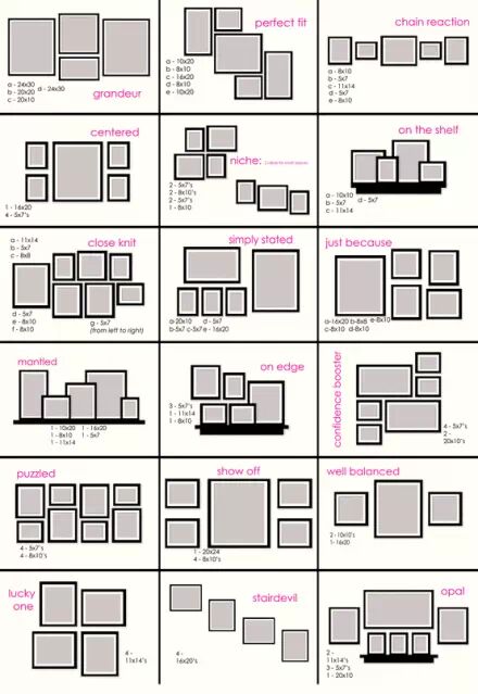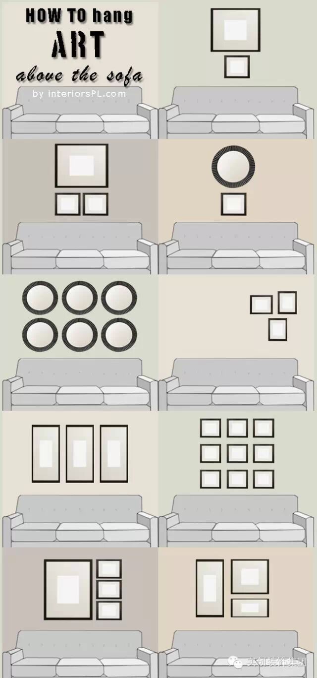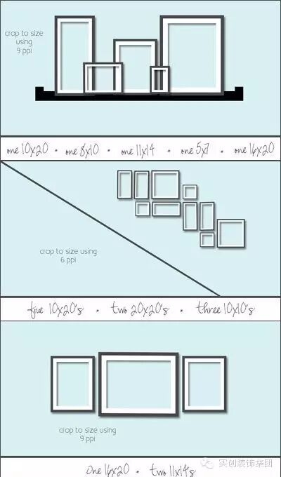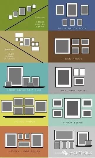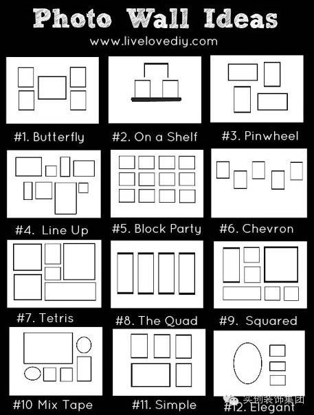 首先来看看照片墙的一些排布方式吧,大概这才是最让人头疼的。据不完全统计,这里有几十种排布,总有一种是适合你家的吧。