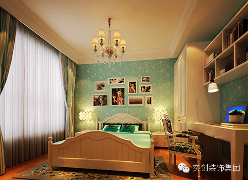 女儿的卧室远离主卧与次卧,给女孩子留有了更加私密的空间。作为女孩子的闺房整体气氛浪漫而轻松,白色的家具,碎花的壁纸,都充满着青春的活力。