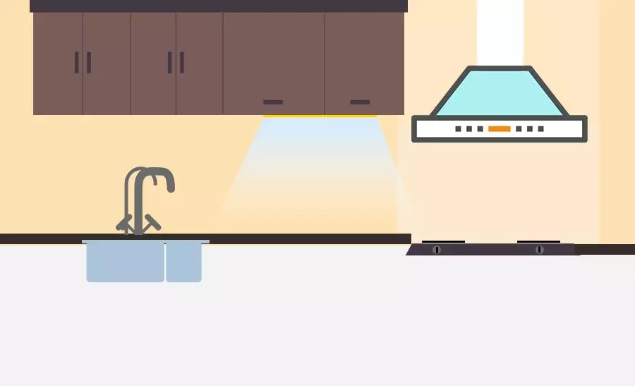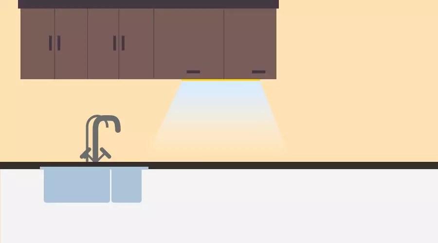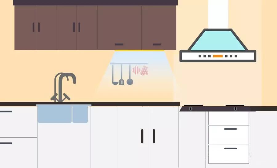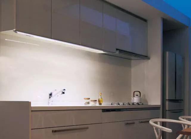 一般切菜在吊柜下面,但是吊柜又很容易挡住头顶的灯光,在吊柜的下方安装照明就很重要了