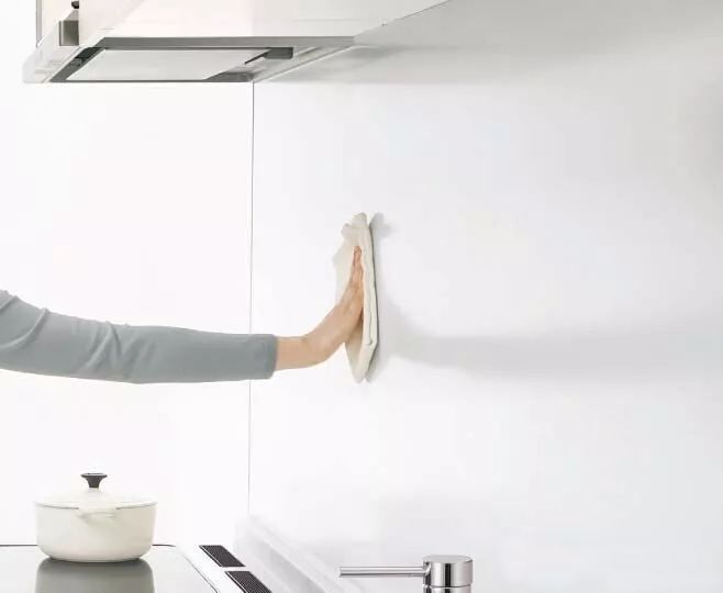 为了让靠近灶具的墙面能保持长久的清洁,可以铺上一个防油污板,耐高温、耐刮擦、易清洁,易施工。