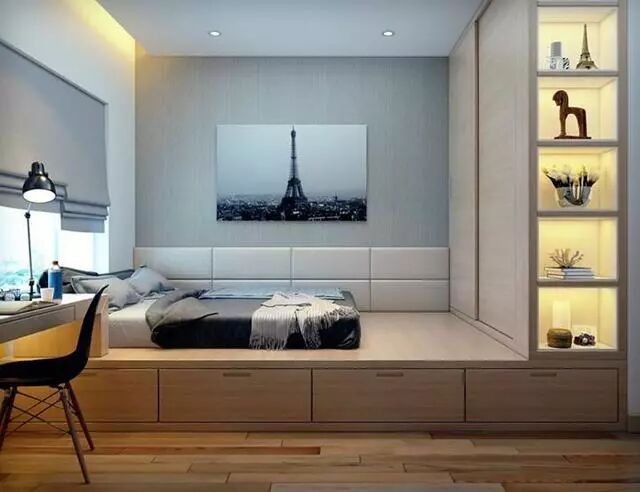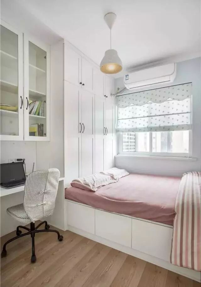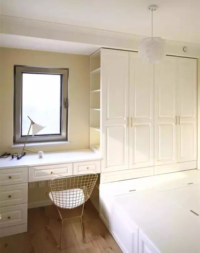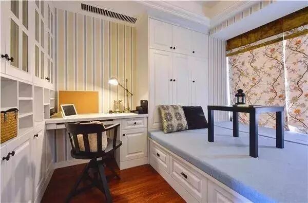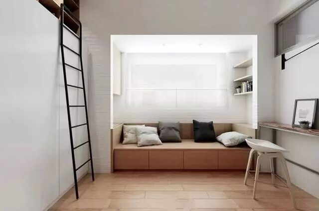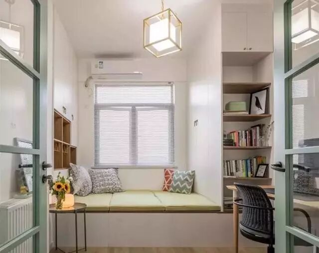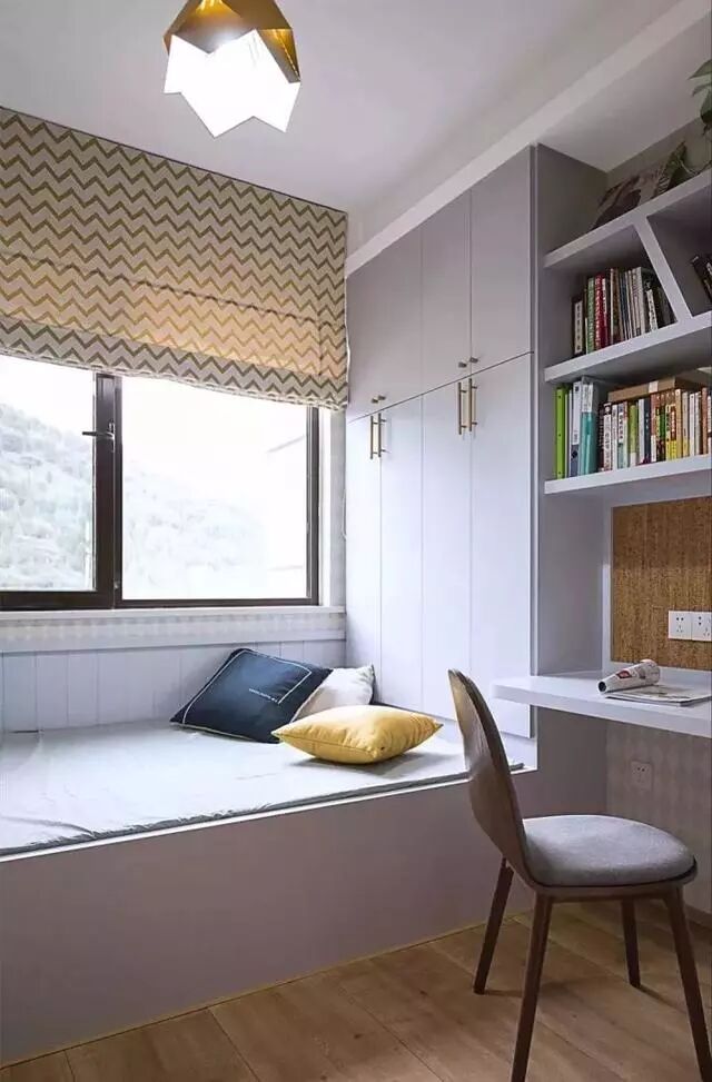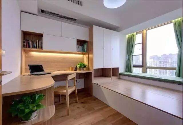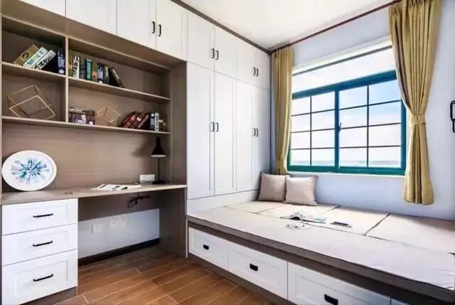 榻榻米结合衣柜和书架组合设计,在居家生活中最为实用便利,性价比也是最高。特别是对于小户型书房休闲区来说,同时将三种最需要的功能结合在一起,让空间节省到最大化。