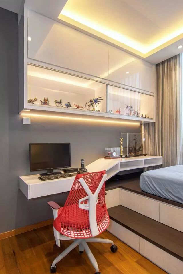 装修效果图:今天和我一起走进书房休闲区,感受当今非常热门的榻榻米+组合柜设计,让生活在休闲收纳中找寻便利和多功能的享受!