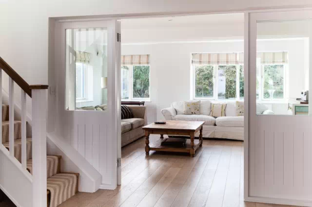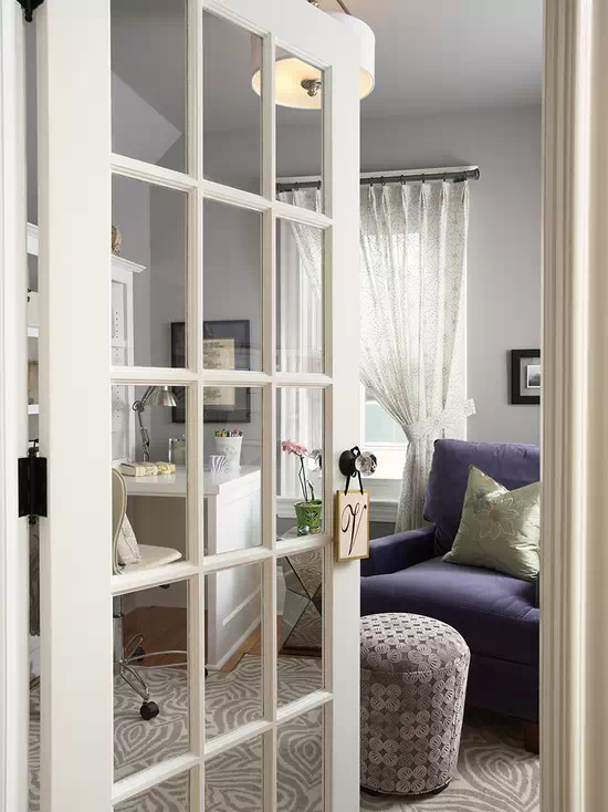 空间很阴暗,楼梯下空间很黑,它们几乎没能获得自然光。解决这个问题的好办法是安置些许镜子将门口的光拉进黑暗领域,这也有助于空间的延伸。同样的,还是请在安装前仔细检查你的新门的尺寸,及镜子的大小。
