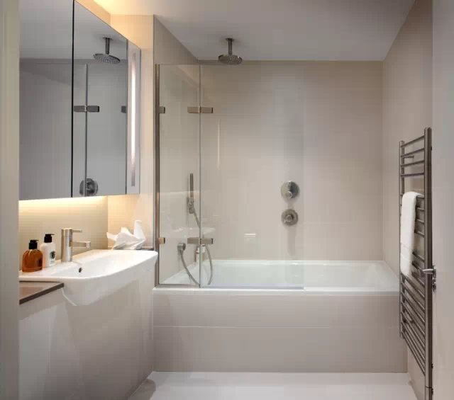 传统浴室中一定有个花洒,但这并不意味着我们依然要忍受尴尬的浴帘来回翻动控制不住飞溅。强化玻璃屏幕是一个革命化的方式给洗澡更自由的感觉。一来它固定坚实,二来便于清洗。如果觉得市场上的太普通那就动手DIY吧。