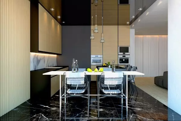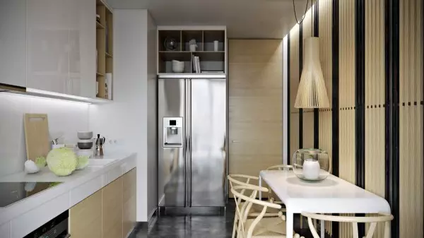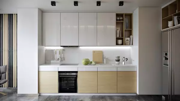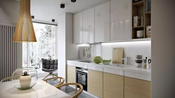 这一次设计师采用了彩绘和裸露的木头打造条纹的效果,少而精致的木材使用,别致的餐厅灯,休闲椅柔软的布艺与硬朗的木材混搭,厨房白色与木材巧妙组合,使这个空间简约而不简单。