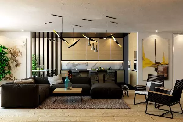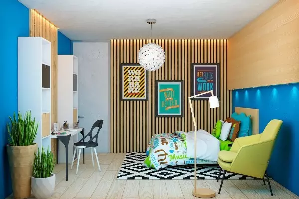 最后波涛装饰来一些板条在多种空间的普遍使用,首先我们看到的是木材板条可移动的屏蔽墙。