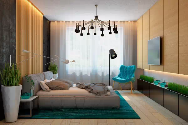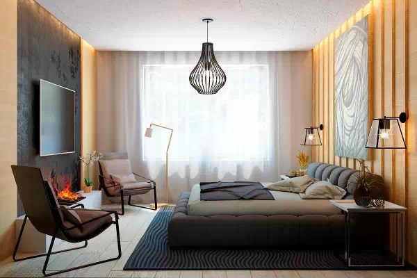 设计师的案例惊喜不断,木材板条被捆绑在每一个空间,从客厅到卧室墙壁上的板条纹理有着让人沉静下来的作用。此外,中性色彩的木材每种颜色通吃,不同的配色方案不同的居住氛围。